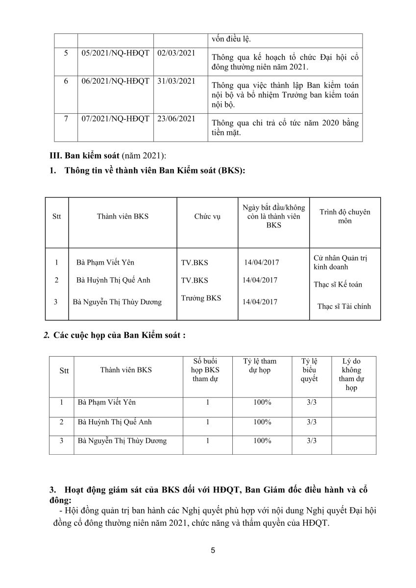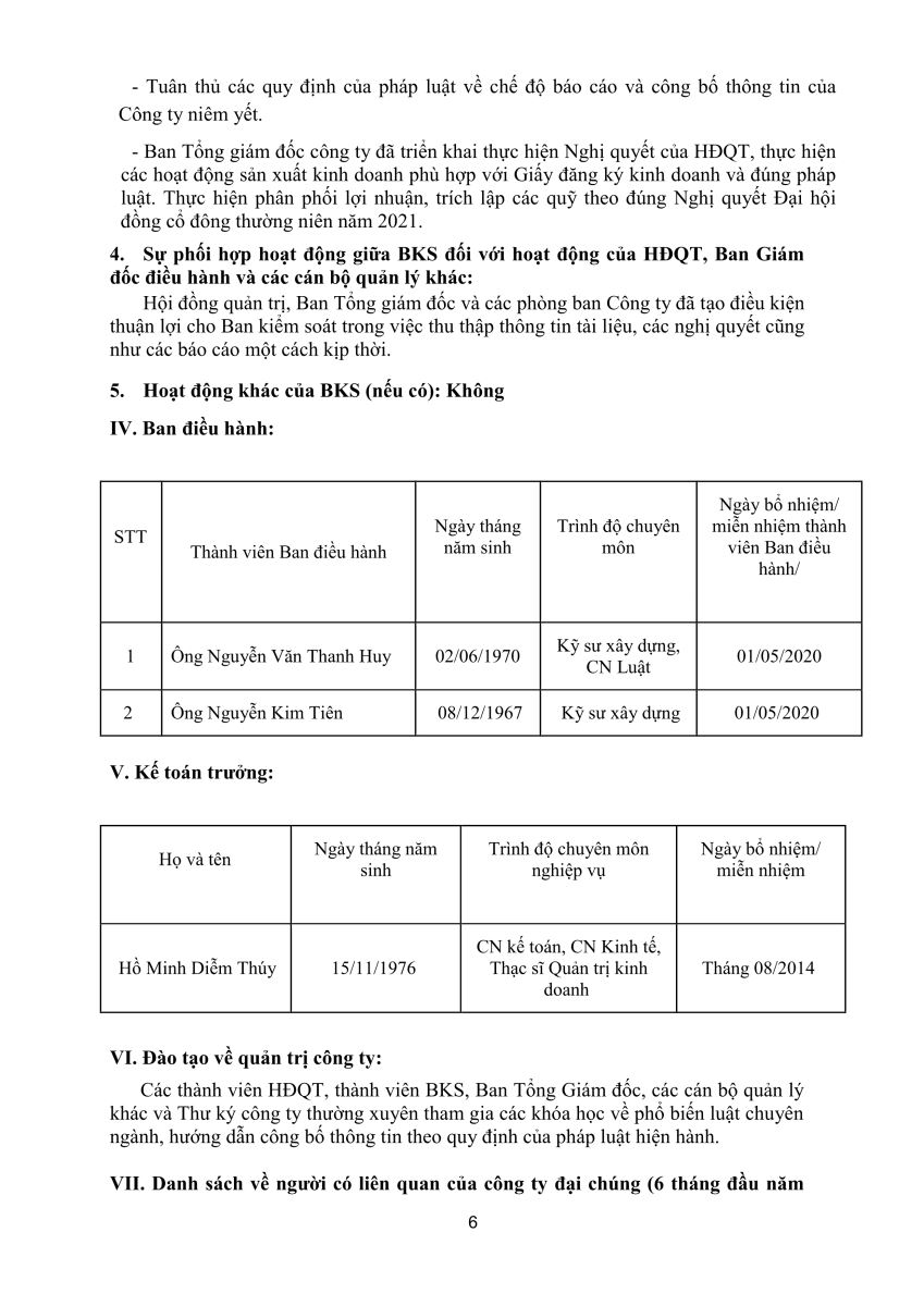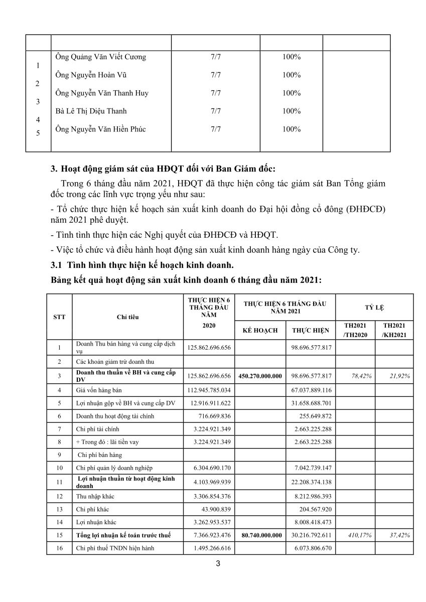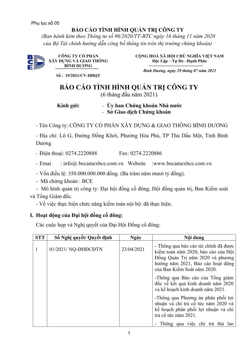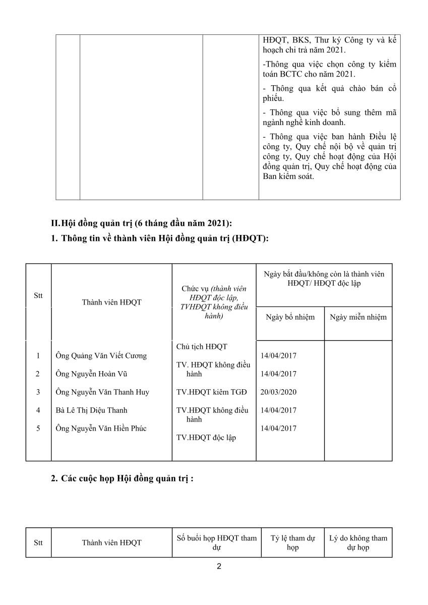 Báo cáo quản trị công ty 6 tháng đầu năm 2021