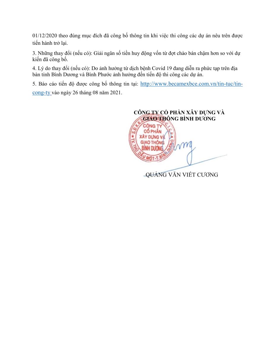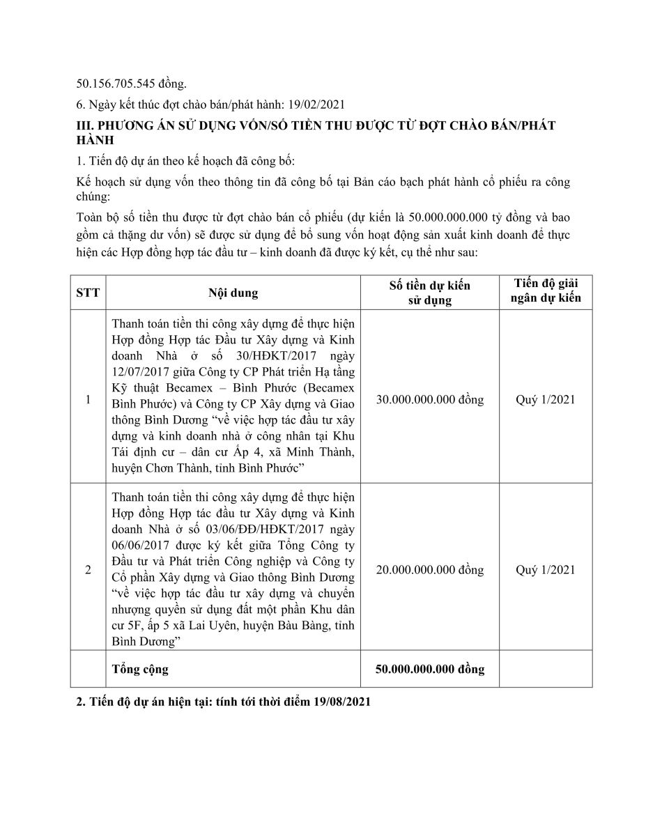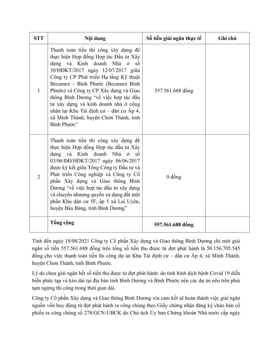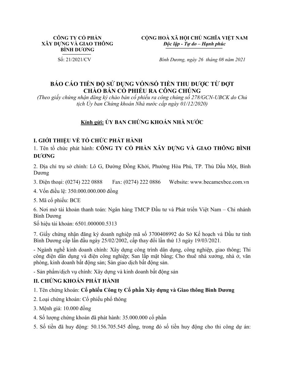 CÔNG TY CỔ PHẦN XÂY DỰNG VÀ GIAO THÔNG BÌNH DƯƠNG BÁO CÁO TIẾN ĐỘ SỬ DỤNG VỐN TỪ ĐỢT PHÁT HÀNH CỔ PHIẾU RA CÔNG CHÚNG.