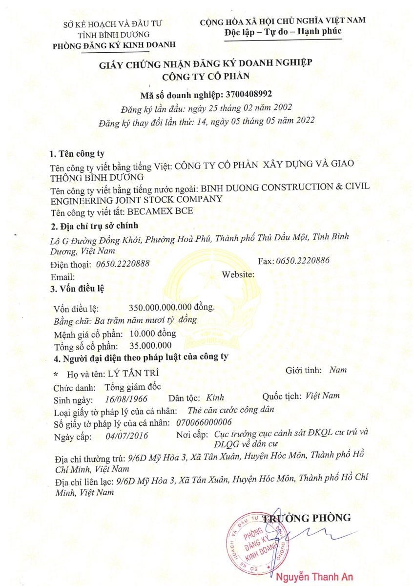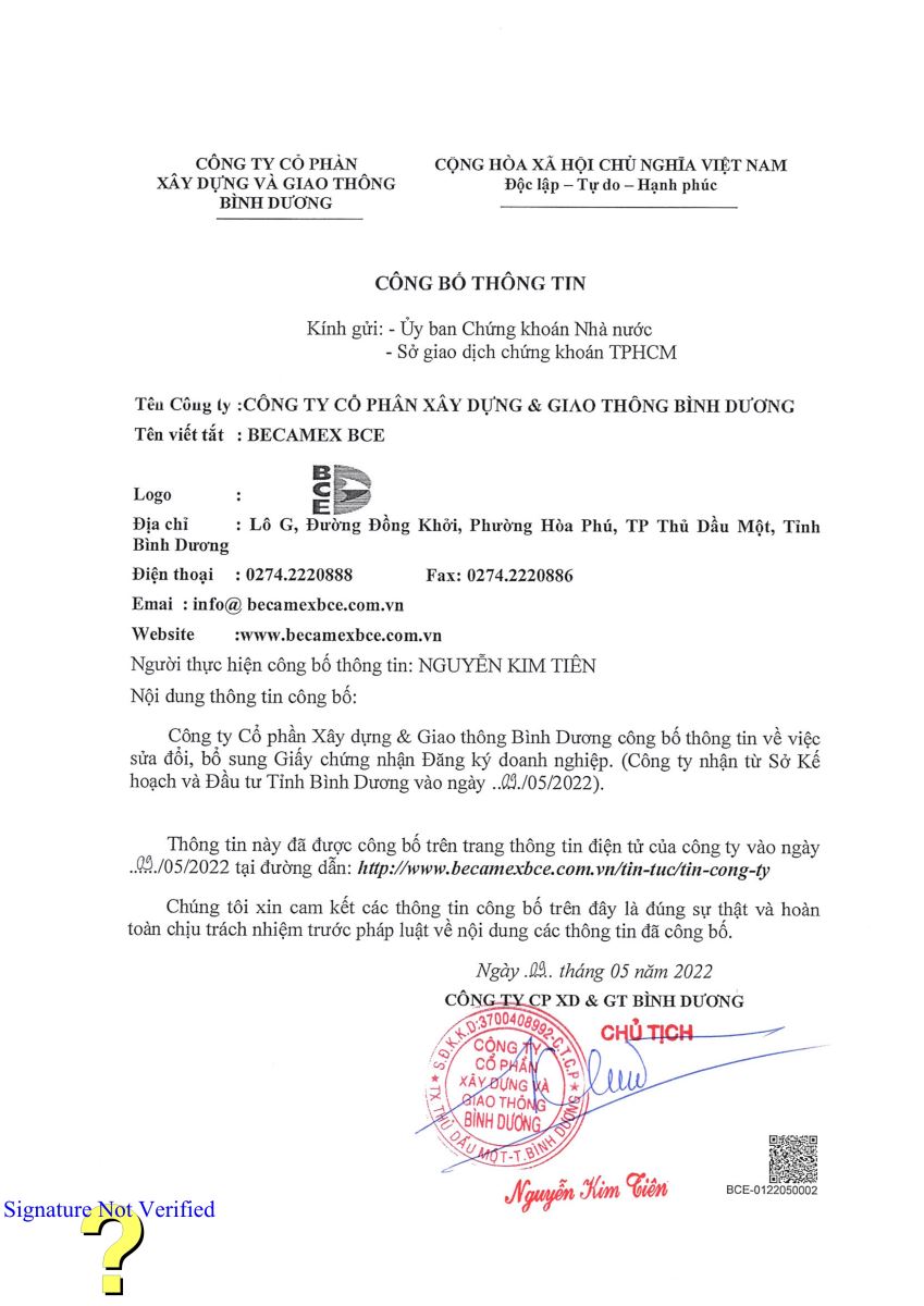 Công bố thông tin về việc thay đổi giấy Chứng nhận Đăng ký Doanh nghiệp