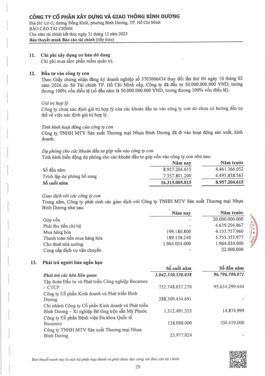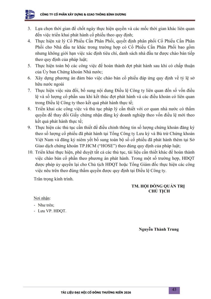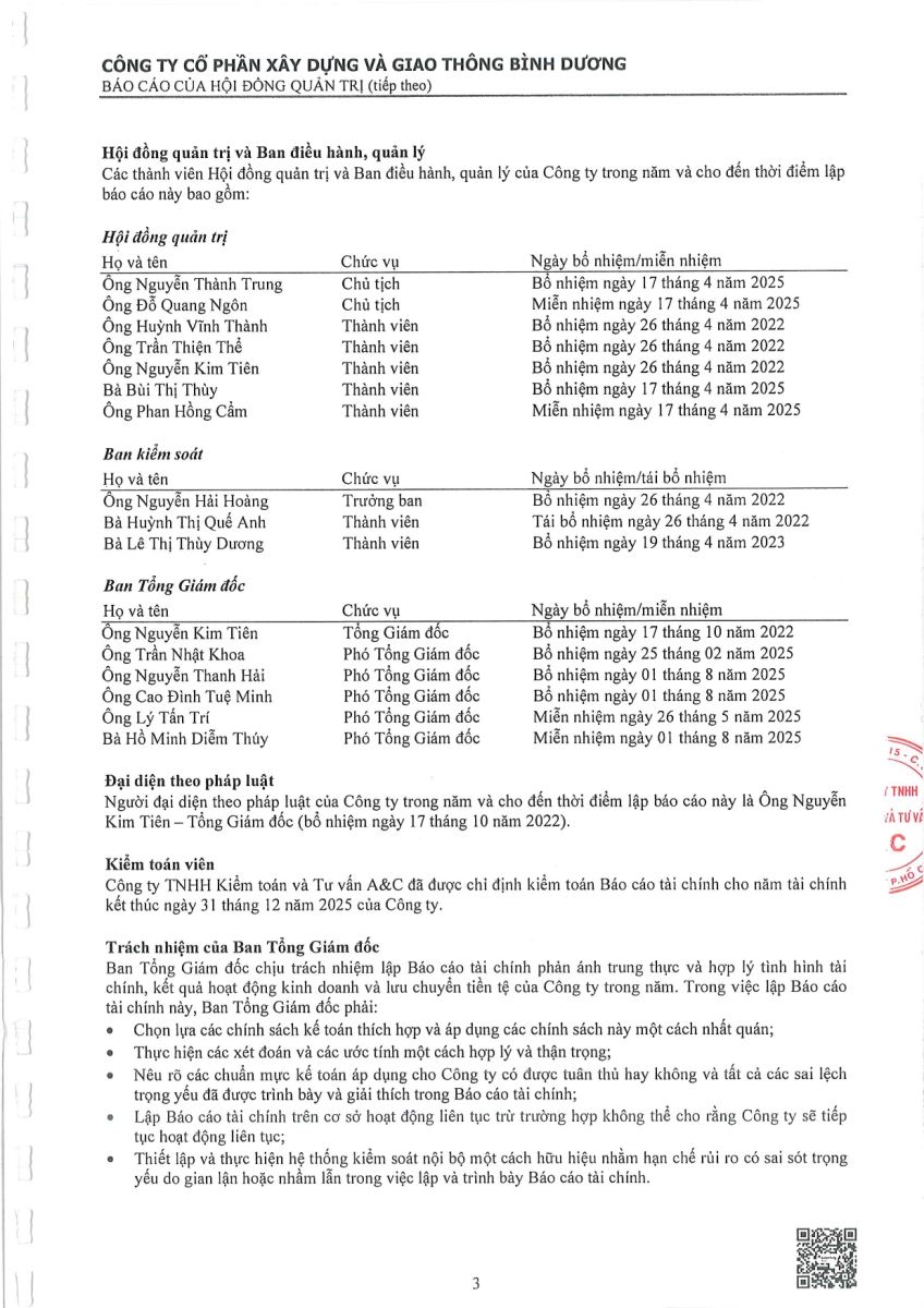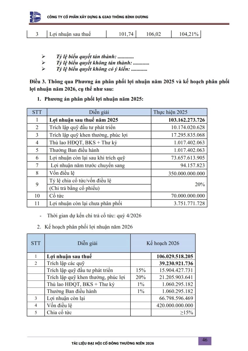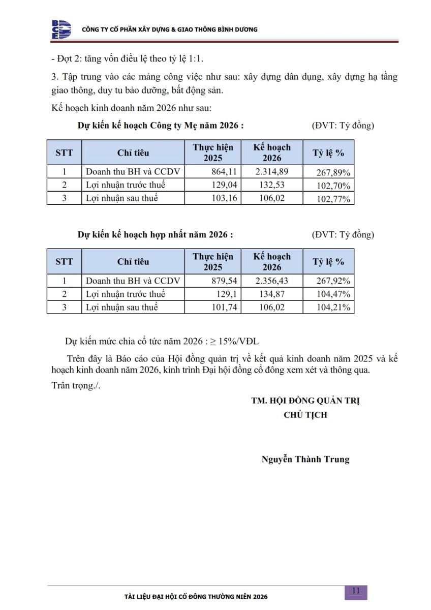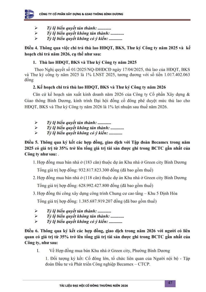 Ngày đăng: 13/04/2026 Công ty Cổ phần Xây dựng và Giao thông Bình Dương công bố tài liệu Cổ đông thường niên năm 2026. Binh Duong Construction & Civil Engineering Joint Stock Company discloses the documents for the 2026 Annual General Meeting of Shareholders.