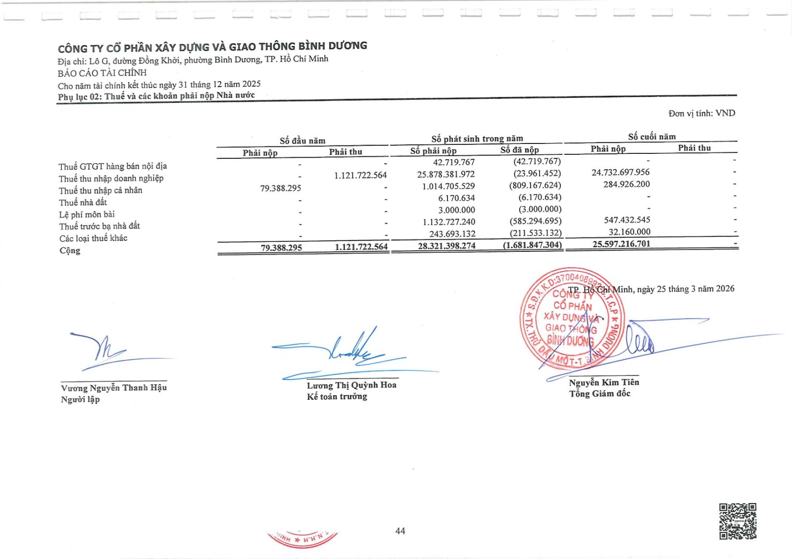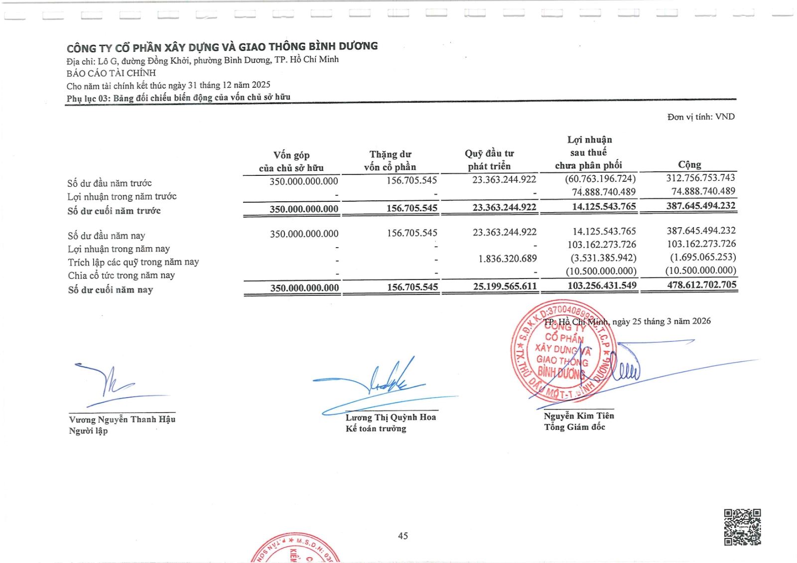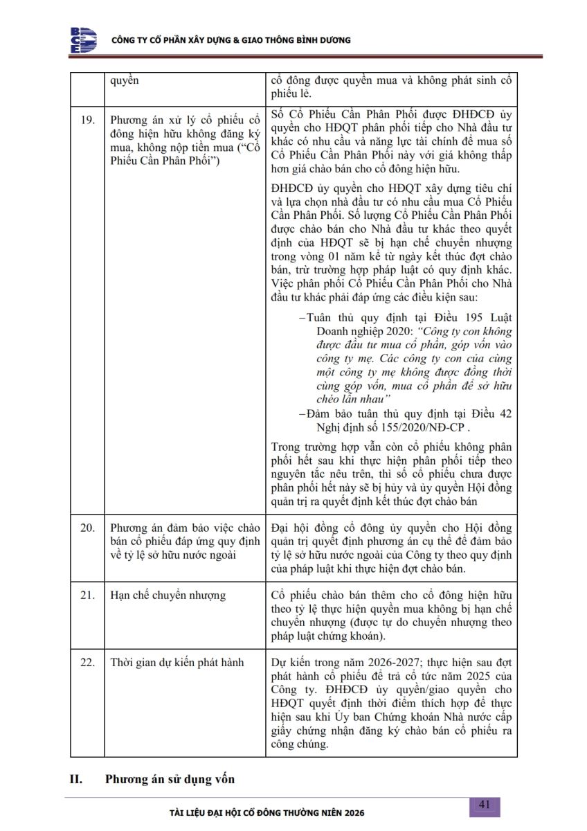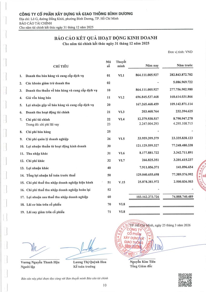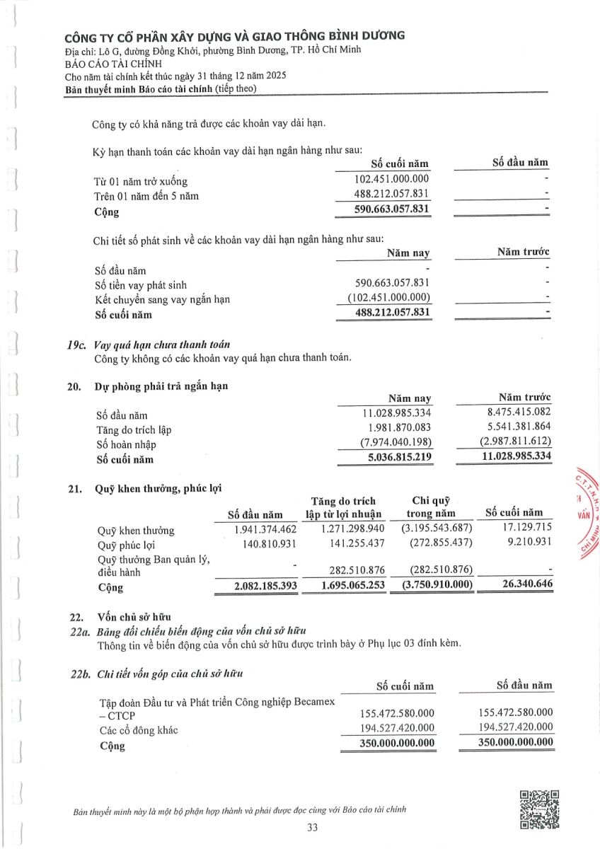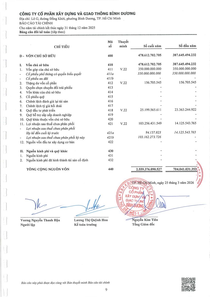 Ngày đăng: 13/04/2026 Công ty Cổ phần Xây dựng và Giao thông Bình Dương công bố tài liệu Cổ đông thường niên năm 2026. Binh Duong Construction & Civil Engineering Joint Stock Company discloses the documents for the 2026 Annual General Meeting of Shareholders.