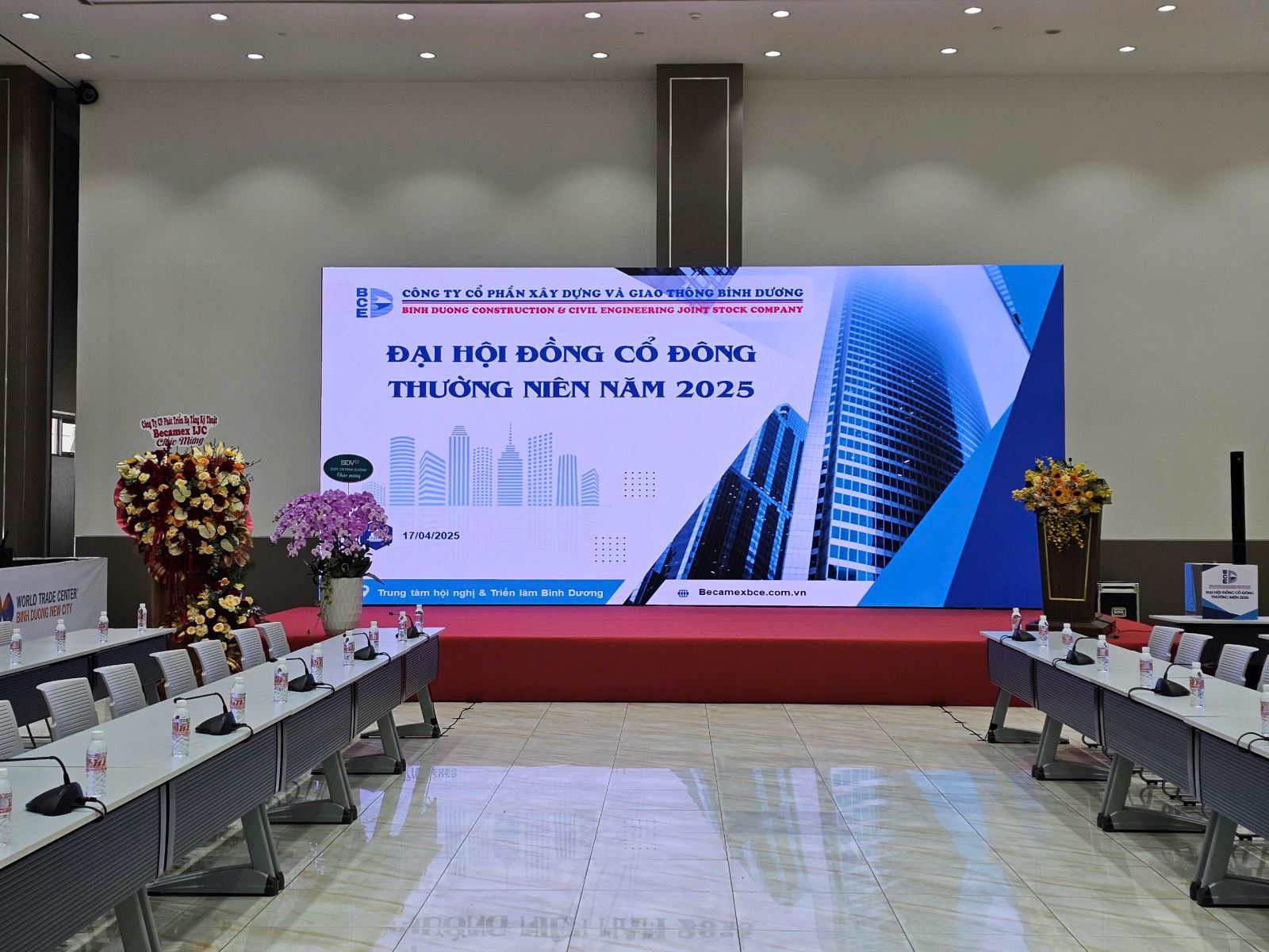 Bình Dương, ngày 17 tháng 04 năm 2025 – Công ty Cổ phần Xây dựng và Giao thông Bình Dương đã tổ chức thành công Đại hội Cổ đông Thường niên năm 2025 tại Trung tâm Hội nghị & Triển lãm Bình Dương. Đại hội là dịp để Ban Lãnh đạo Công ty tổng kết hoạt động kinh doanh năm 2024, trình bày định hướng phát triển trong năm 2025 và thông qua các nội dung quan trọng với sự đồng thuận cao từ các cổ đông.